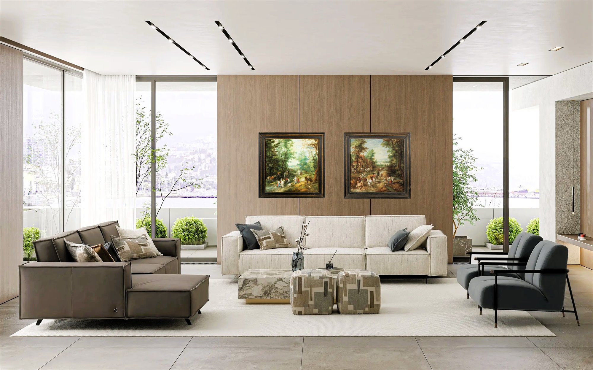 This splendid pair of paintings, executed with exceptional detail, superbly showcases the unparalleled pictorial skills of the celebrated landscape masters of the Flemish school.