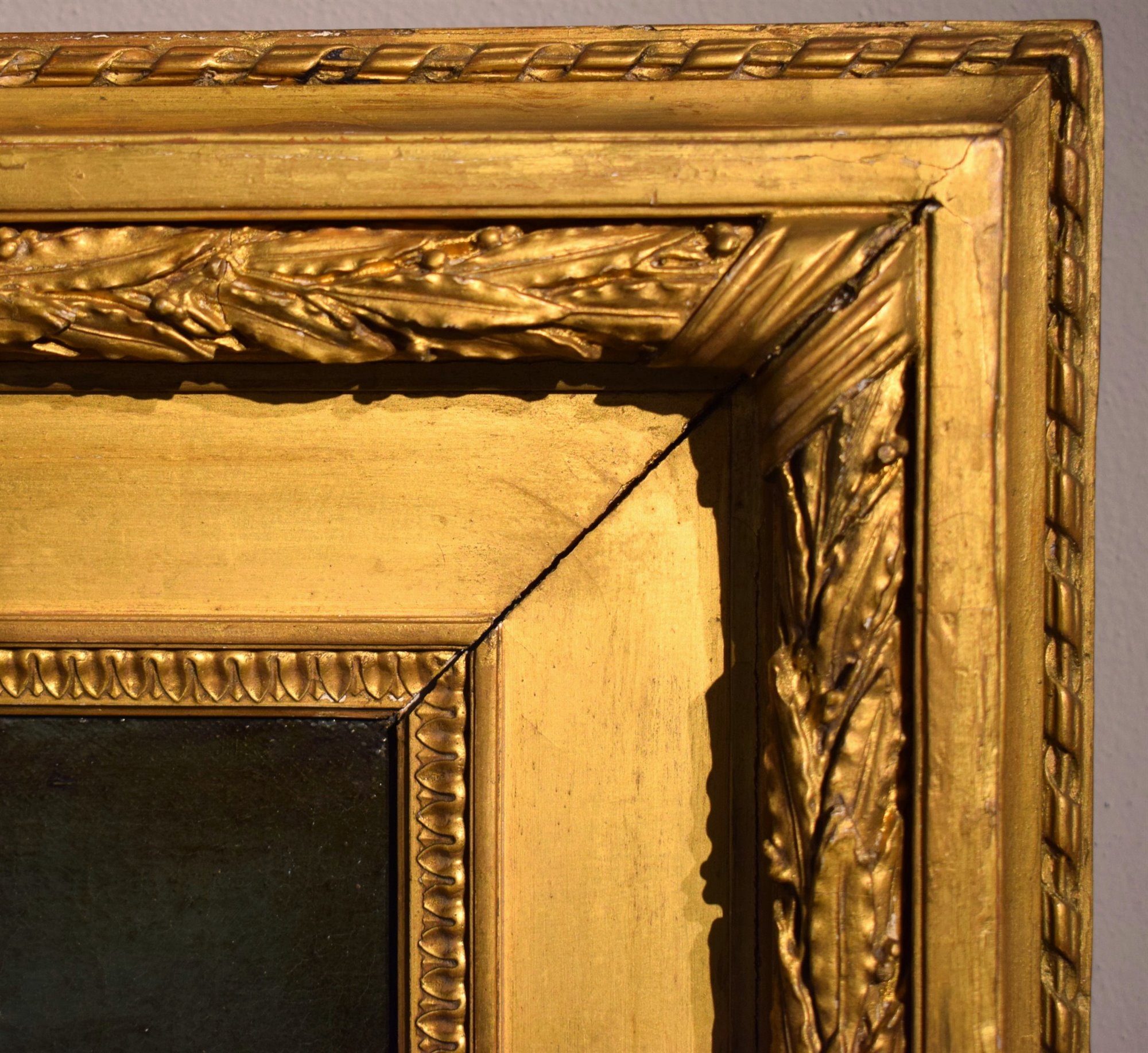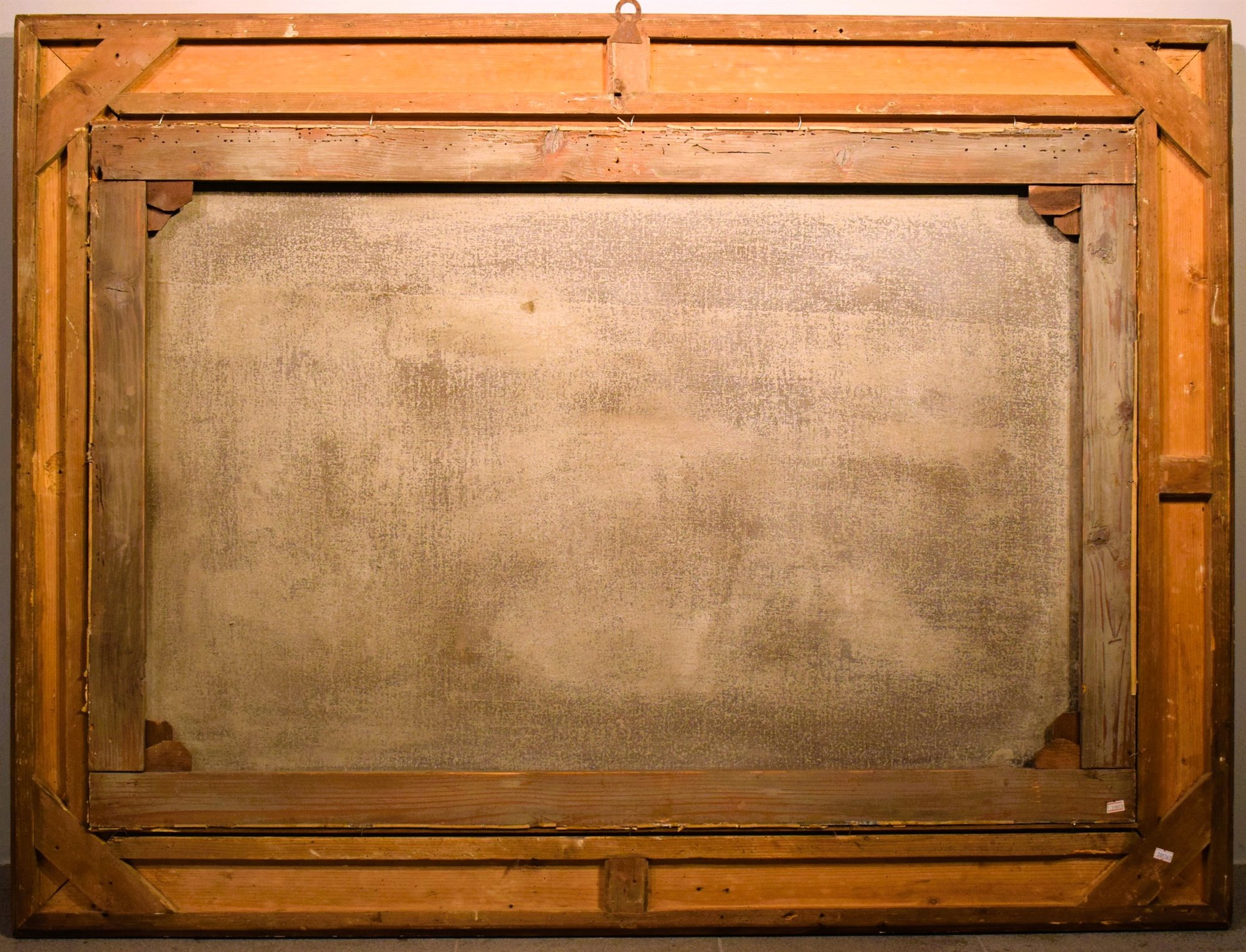 The large canvas is exceptionally decorative, complete with a splendid and impressive gold frame with exquisite plant decorations.