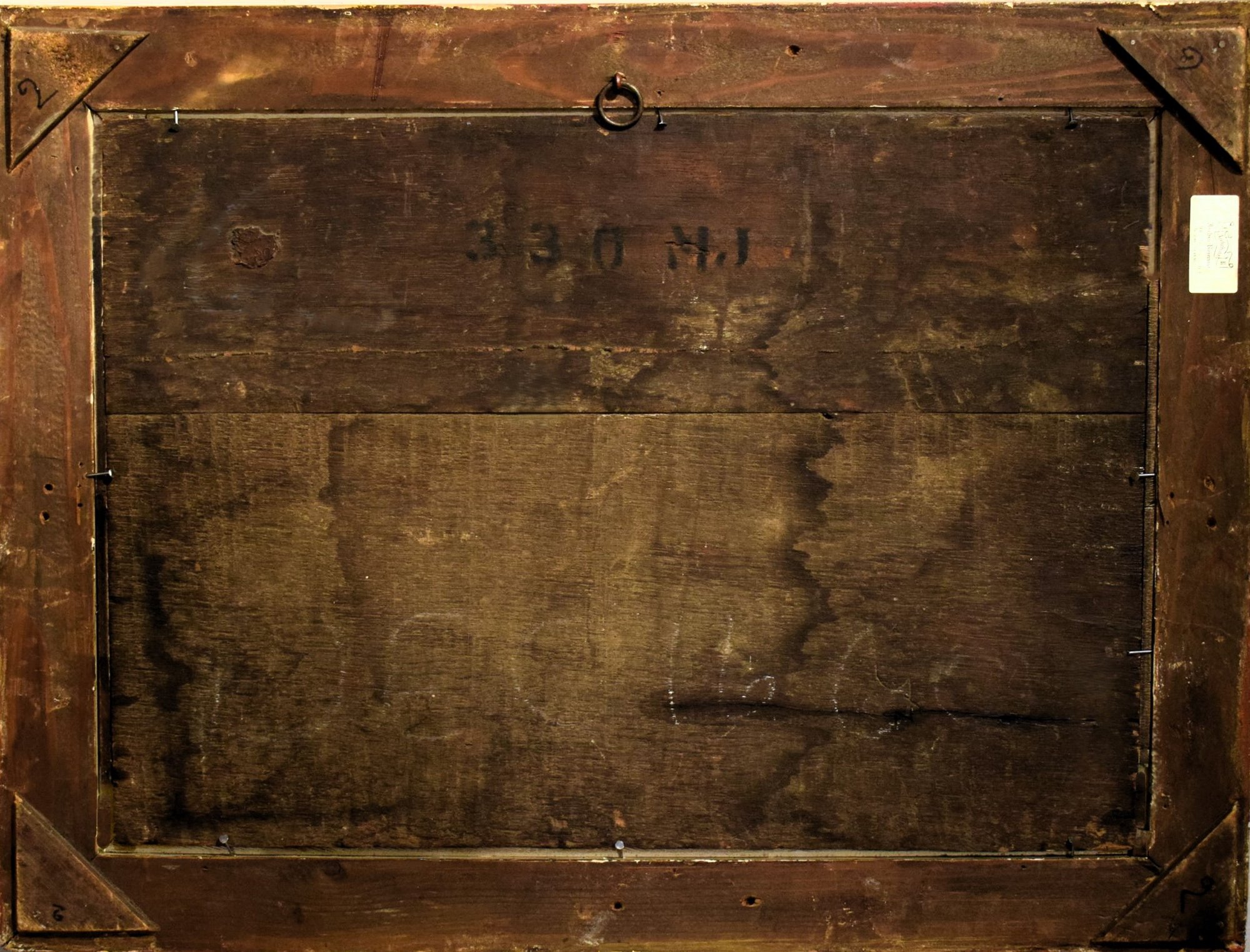 Le panneau est en bon état, sans restaurations ni repeintures et est complet avec un splendide cadre ancien, sculpté et doré.