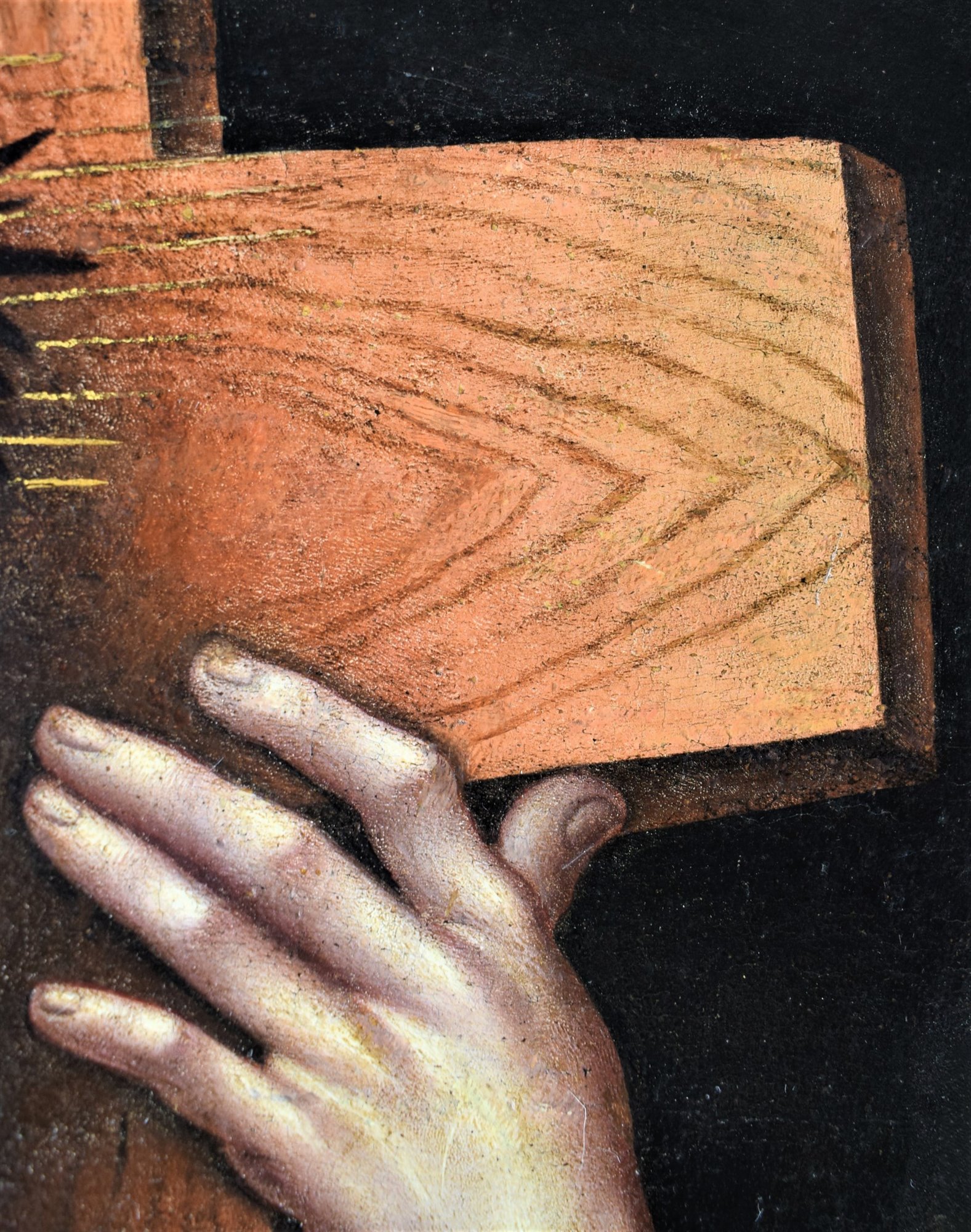 La version du "Portacroce" proposée ici diffère par le visage du Christ tourné vers le spectateur sur le côté gauche et par la position différente des mains.