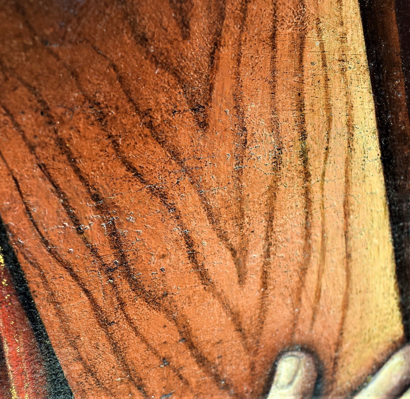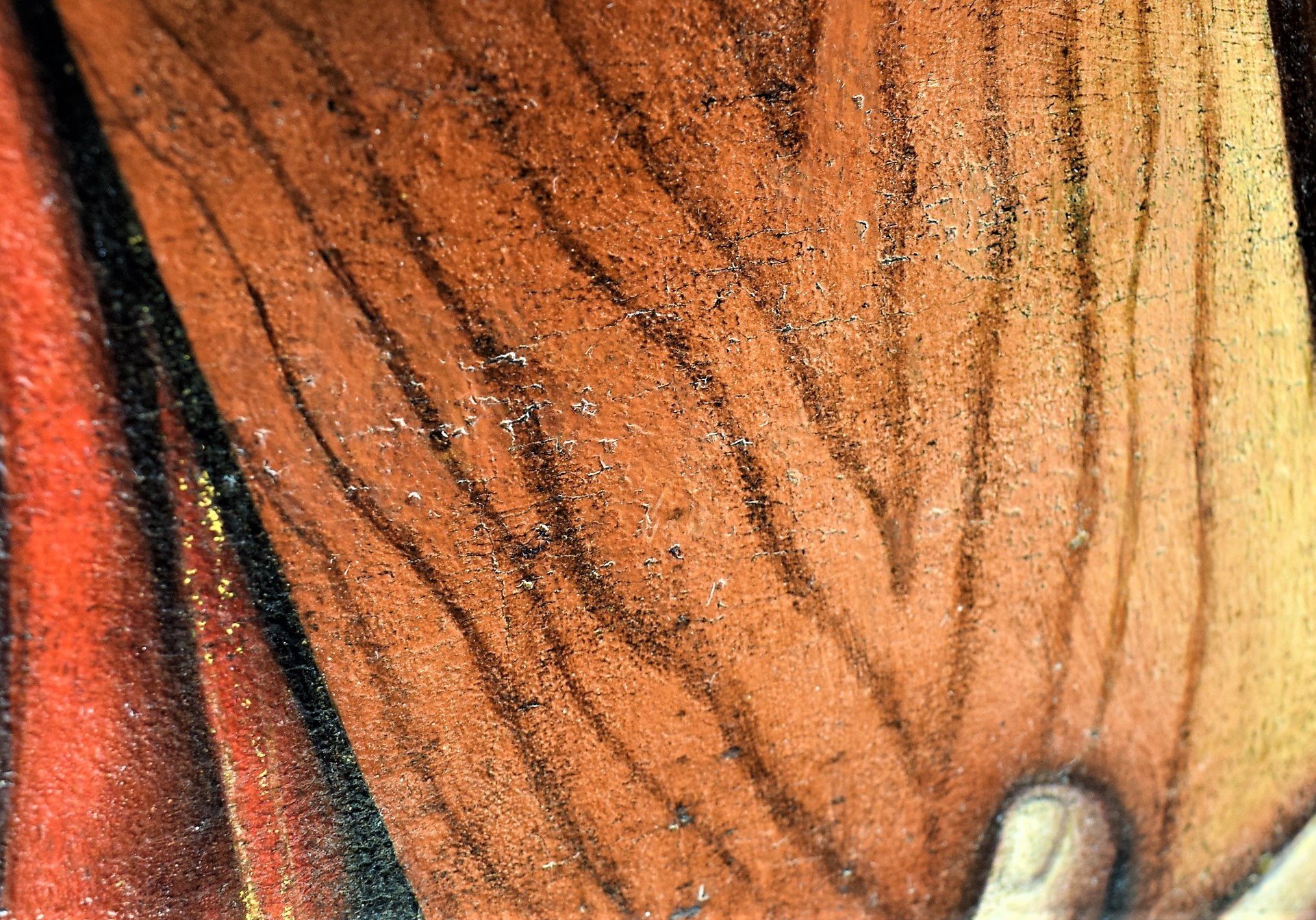 L'œuvre est peinte sur un seul panneau de peuplier comme il était d'usage dans les ateliers les plus importants du début du XVIe siècle.