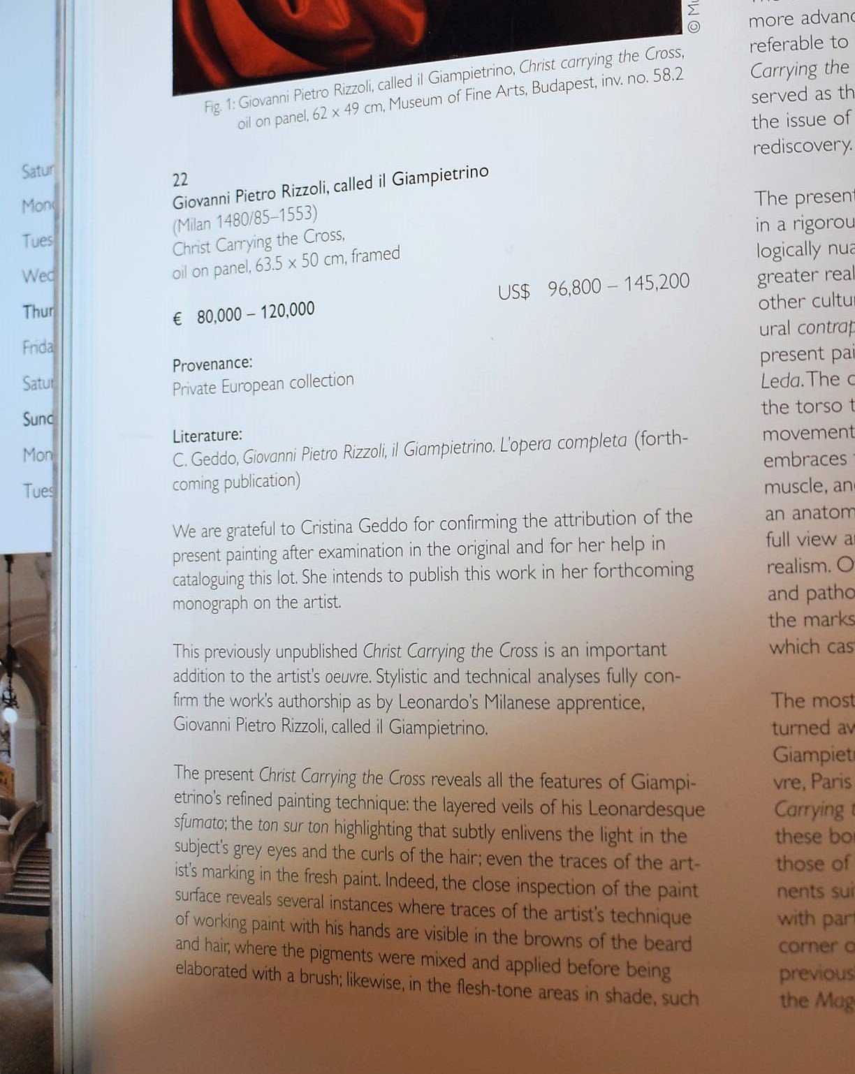Ce magnifique ouvrage, véritable perle de la première Renaissance lombarde, renvoie évidemment au catalogue de Giovan Pietro Rizzoli dit "Giampietrino".