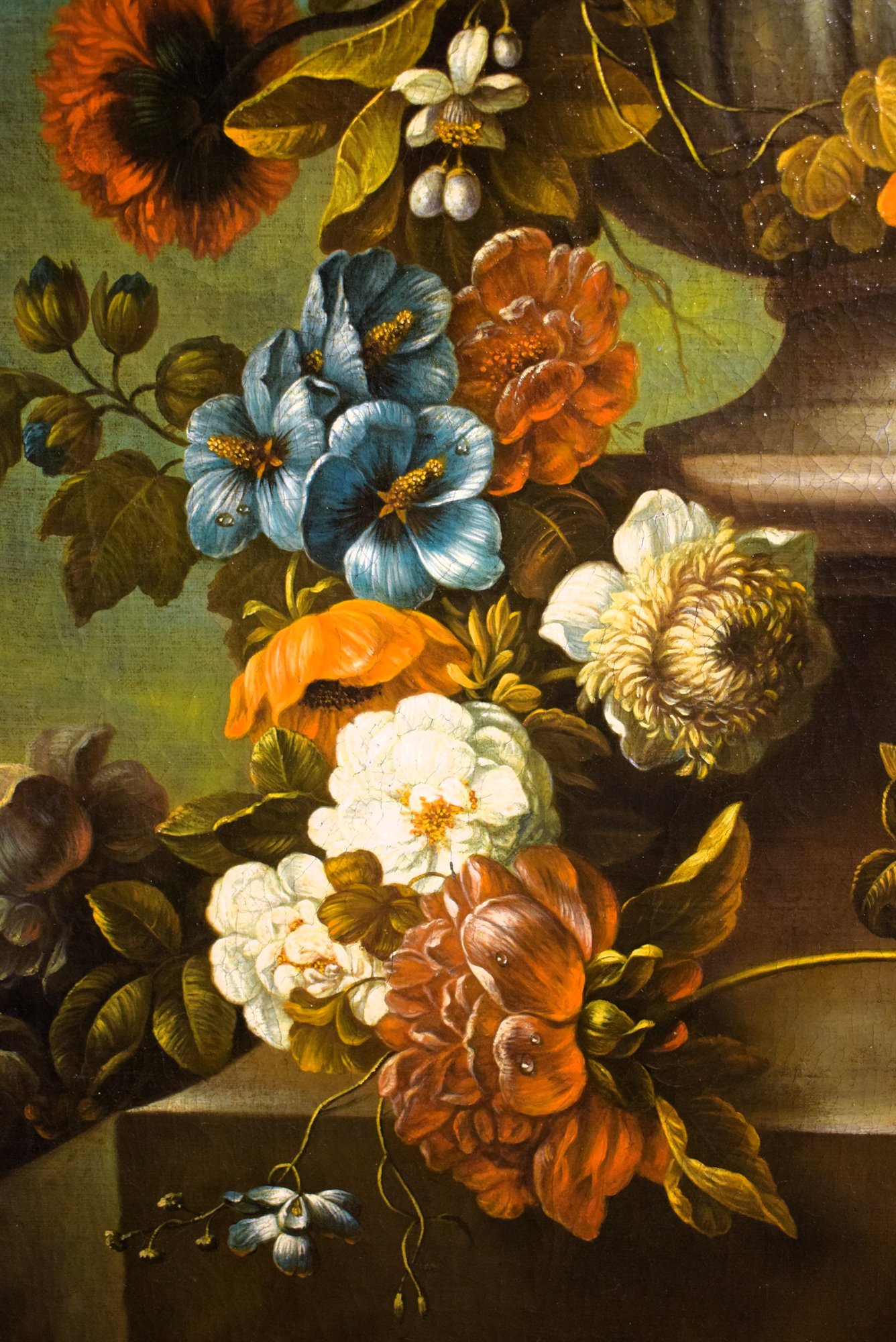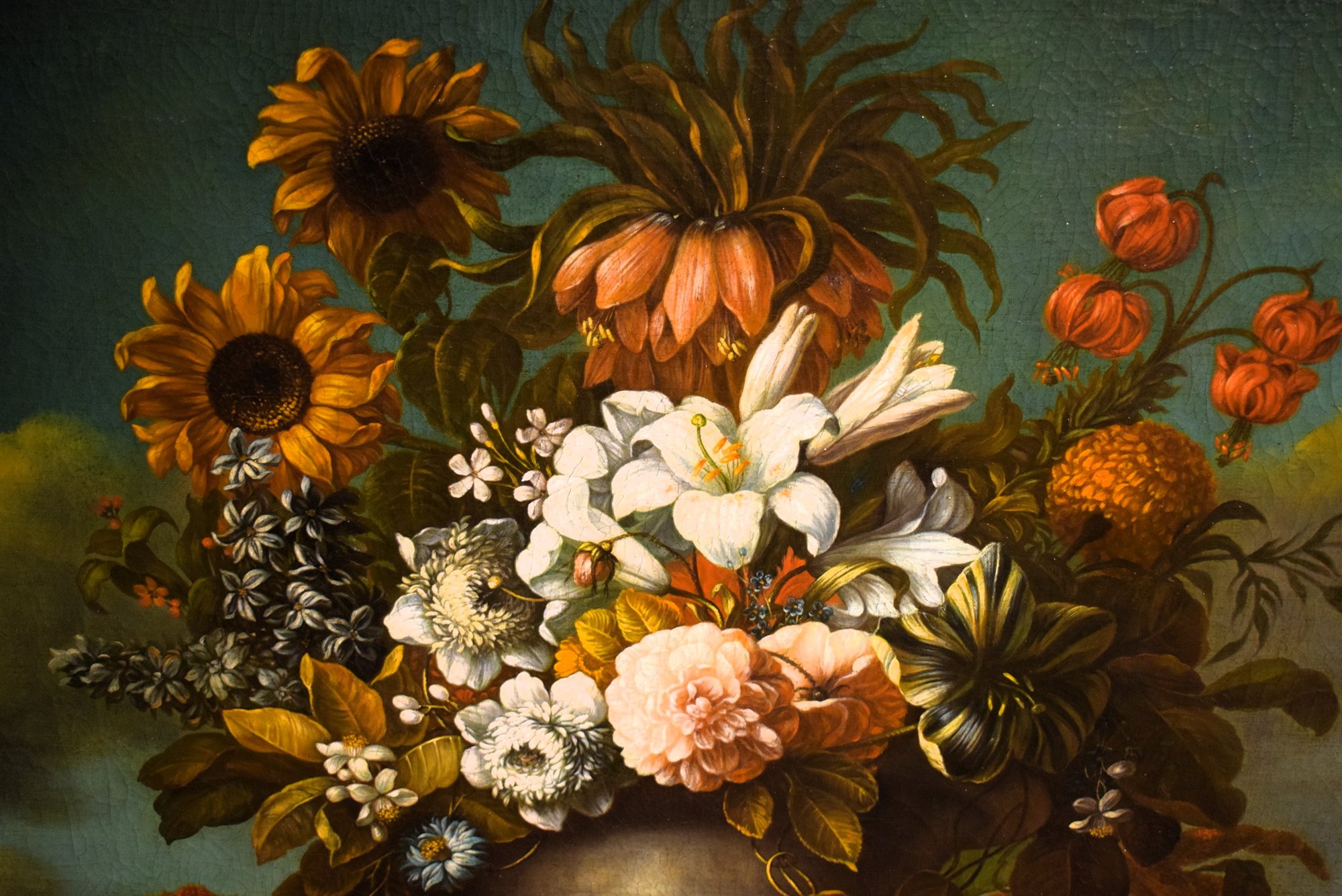 Cette magnifique nature morte représente un grand vase rempli de fleurs et impressionne par l'exubérance de sa composition.
