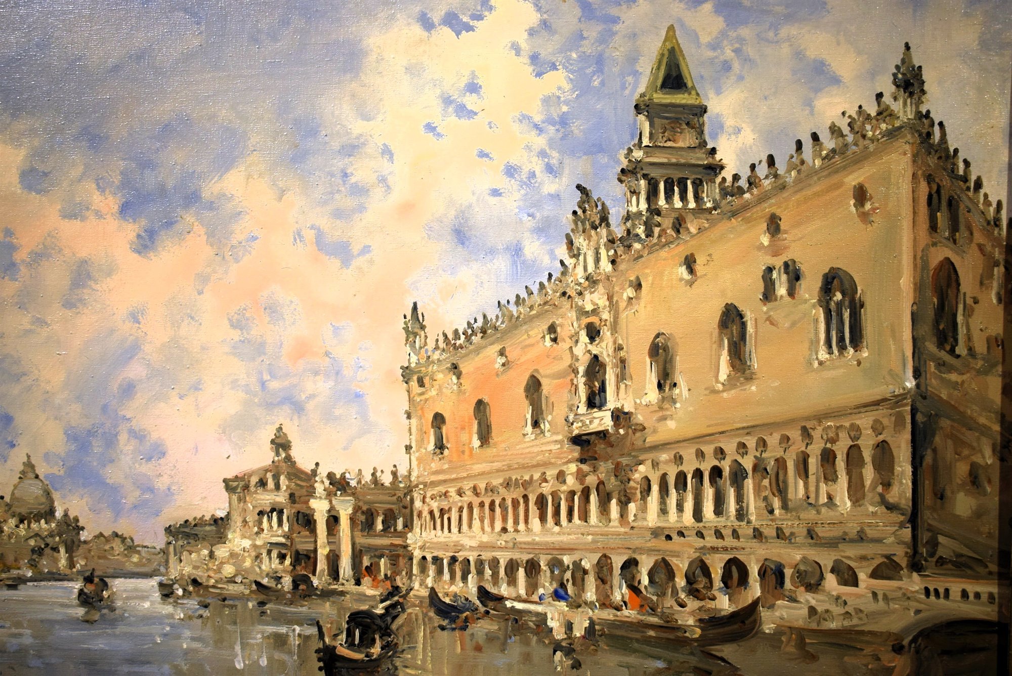La toile représente la vue spectaculaire du Bassin de Saint-Marc, avec ses palais et monuments emblématiques.