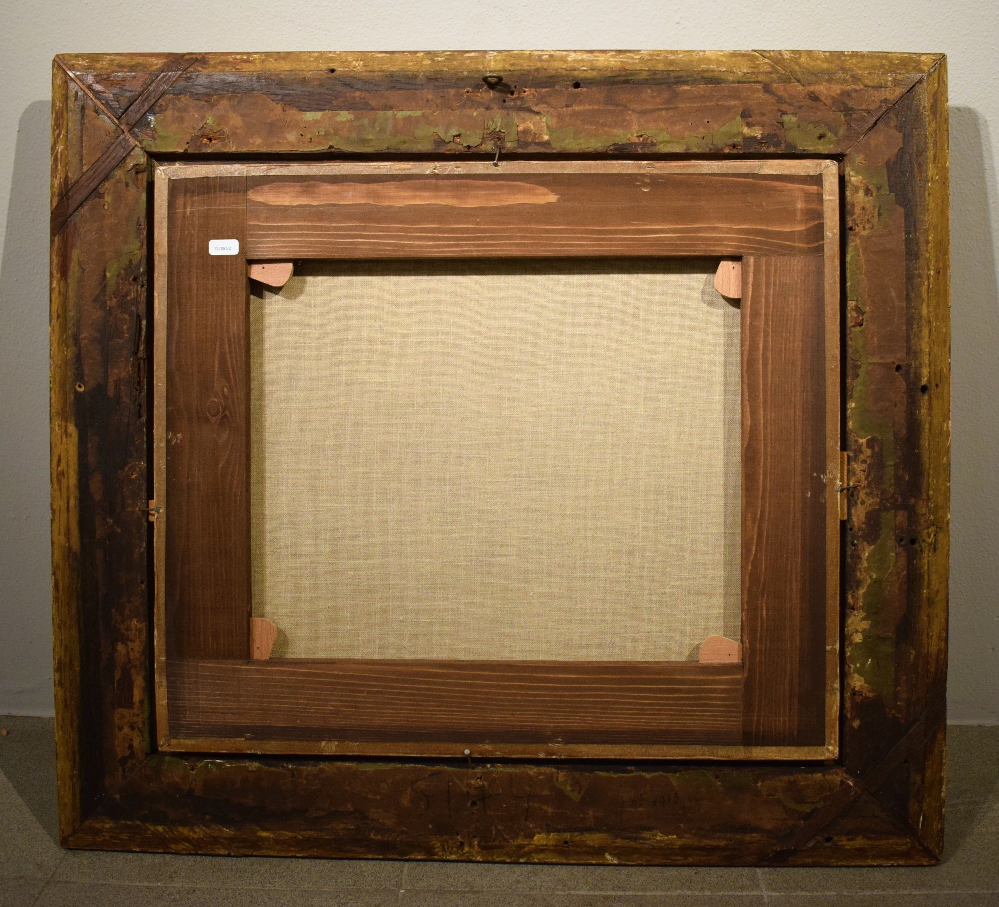 L'opera è inserita in una importante cornice dorata di grosso spessore coeva al dipinto.